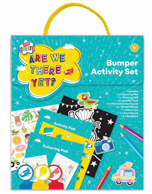 Includes Colouring Pad, Drawing Pad, 2 Activity Pads, 6 Mini Colouring pencils, 3 Stampers, 4 Sticker Sheets, Stencil Sheet, Velvet Art Sheet.