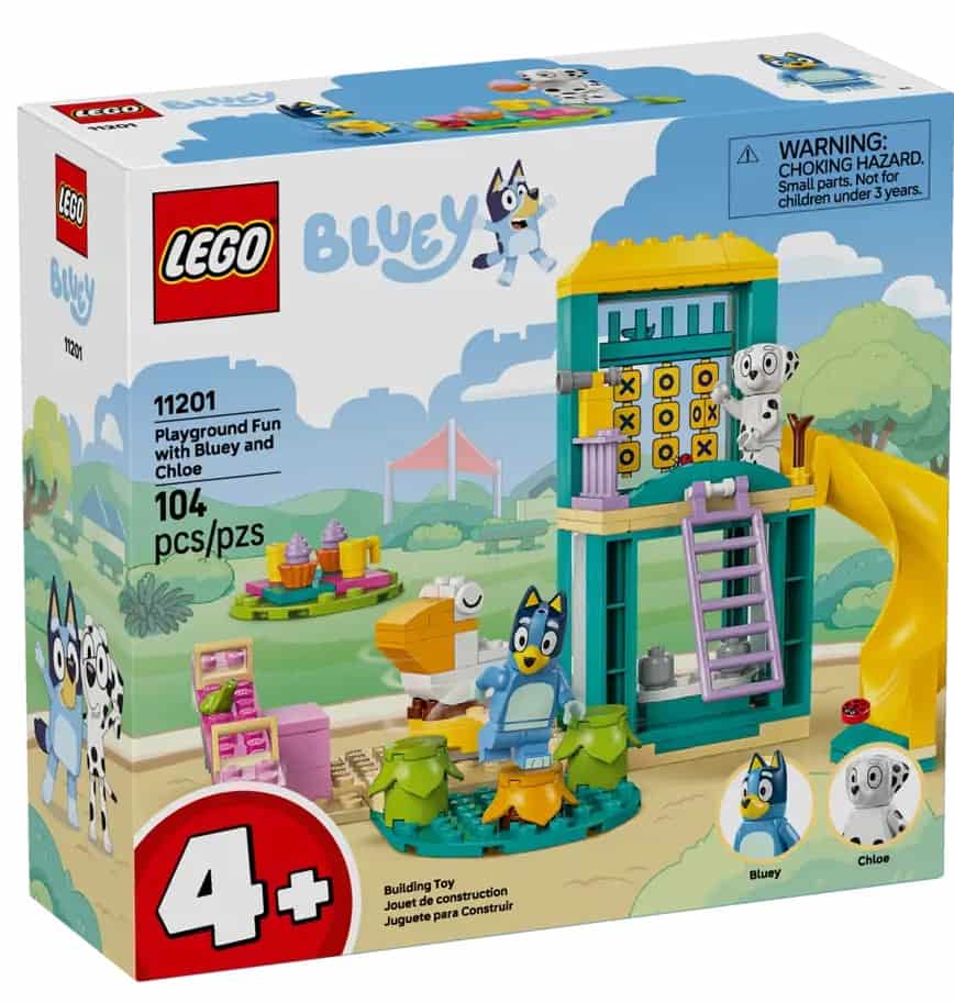 Delight young builders with LEGO Playground Fun with Bluey and Chloe. A vibrant preschool set inspired by the beloved Bluey TV series. Designed for ages 4+, this 104-piece kit offers imaginative play and easy construction with familiar characters and colourful playground scenes.