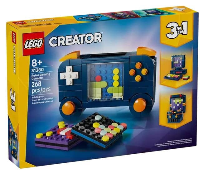 The LEGO Creator Retro Gaming Console set features a classic handheld gaming console build that can be rebuilt into a mini computer or arcade machine, it’s perfect for creative play, display and storytelling for kids and adults alike.