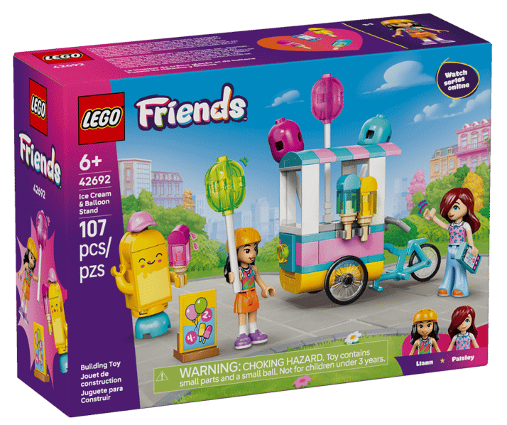 - This engaging LEGO Friends set includes everything kids need to build an ice cream and balloon stand with two Friends characters (Liann and Paisley), a cute ice pop mascot, menu board, cash register, phone and table for imaginative sales adventures.