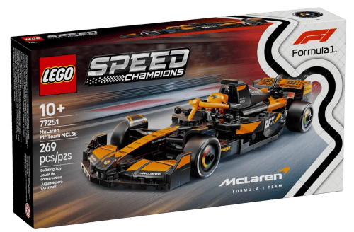 The LEGO Speed Champions McLaren F1 Team MCL38 Race Car set lets fans of Formula 1 bring the thrill of the track home with a detailed brick-built replica of the McLaren MCL38 from the 2024 season, featuring authentic team-sponsor livery, an opening cockpit with halo bar, rear wing and realistic design touches.