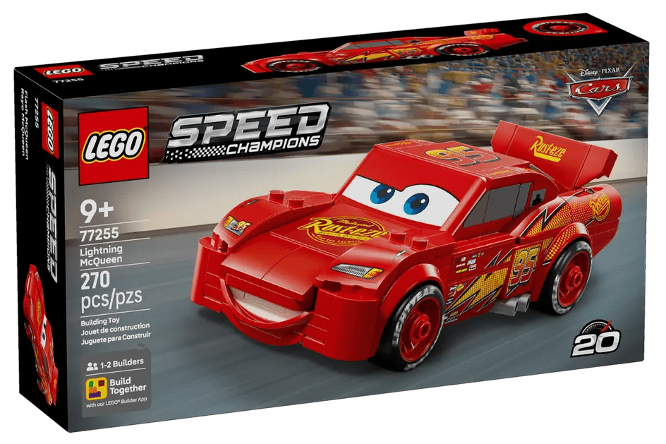 The LEGO Speed Champions Lightning McQueen set lets fans of Disney Pixar’s Cars celebrate the 20th anniversary of the beloved racing classic with an authentic brick built replica of Lightning McQueen, complete with his signature yellow and orange lightning bolt, number 95, Rust Eze sponsor logo, Lightyear branded tyres and a detailed undercarriage.