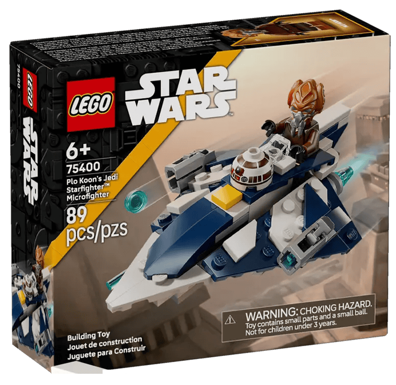 The LEGO Star Wars Plo Koon’s Jedi Starfighter Microfighter set brings exciting galactic action to life with a quick build, miniature version of the iconic starfighter, featuring authentic details from Star Wars. The set includes a cockpit for the included Plo Koon minifigure and a R7 D4 astromech droid head, plus dual stud shooters for imaginative battle play and display.