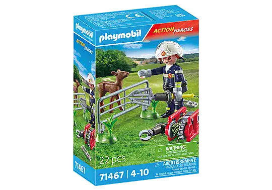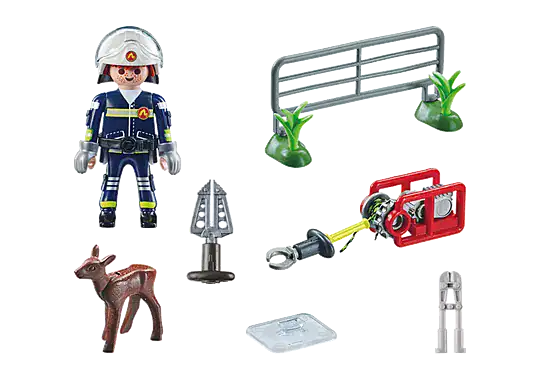 - Includes 1 firefighter figure and 1 fawn animal, plus accessories including helmet, gloves, rescue spreader/cutter and fence section to simulate the animal rescue mission