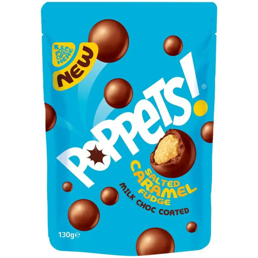- 9 x 130g Poppets! Salted Caramel Bags