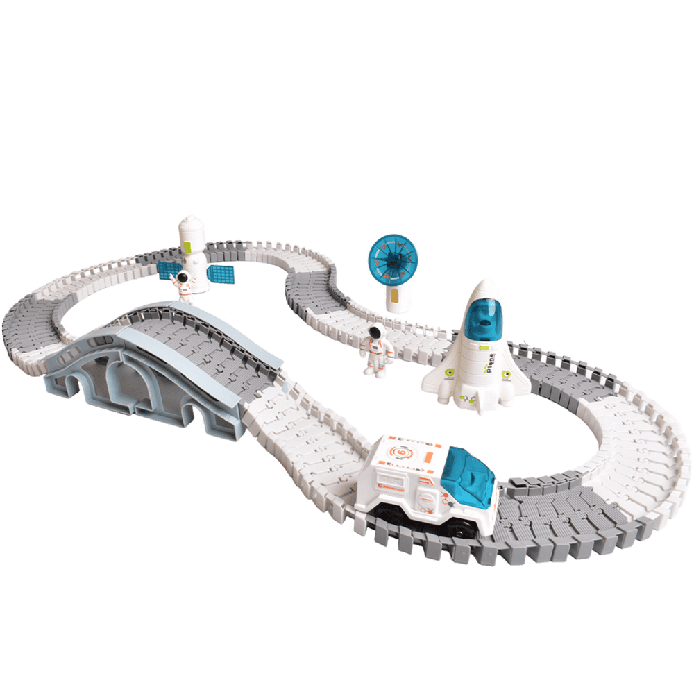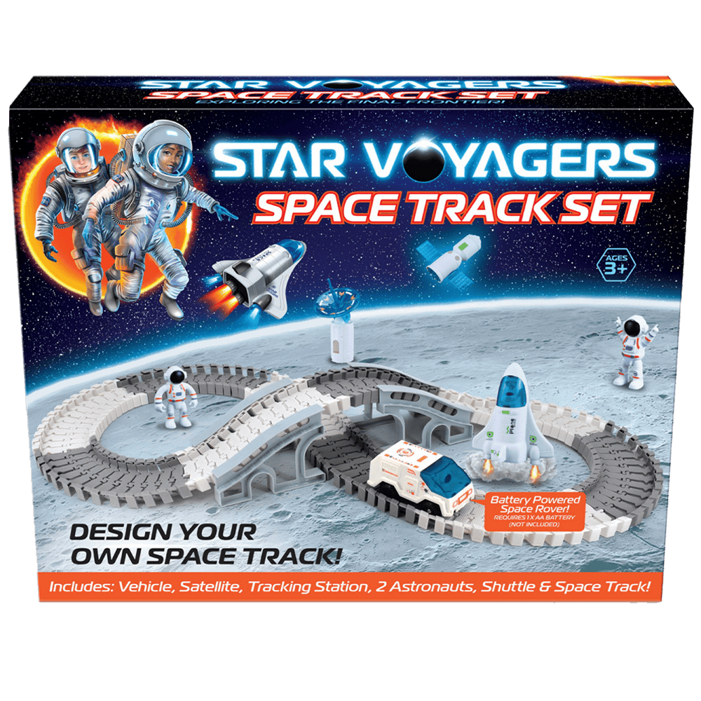 - The star voyagers space vehicle and track set includes a vehicle, satellite, tracking station, two astronauts and a shuttle & space track